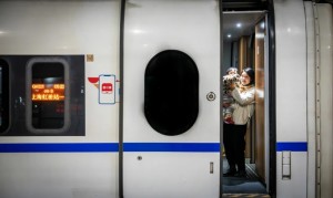 2月2日,在北京南站开往上海虹桥的G9次列车上,列车长官淼组织春运联欢活动,与乘车旅客互动,温暖旅客回家路。王博轩 摄
