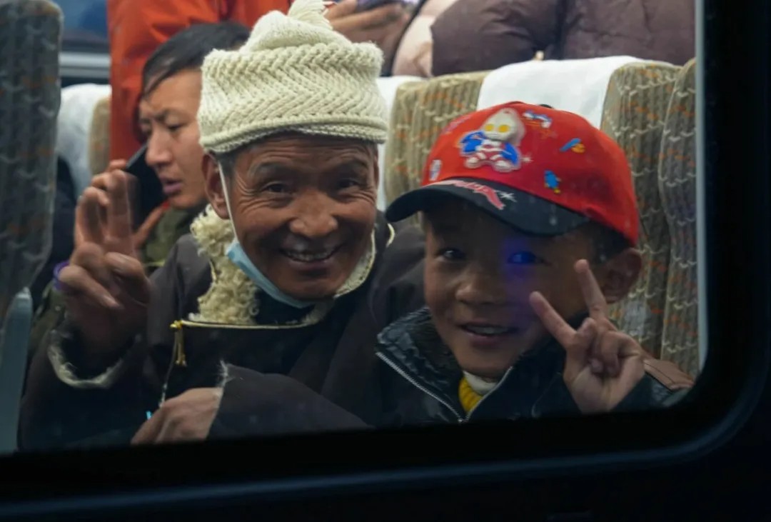 2月2日,在开往日喀则的列车上,爷孙俩开心留影。土旦塔杰 摄