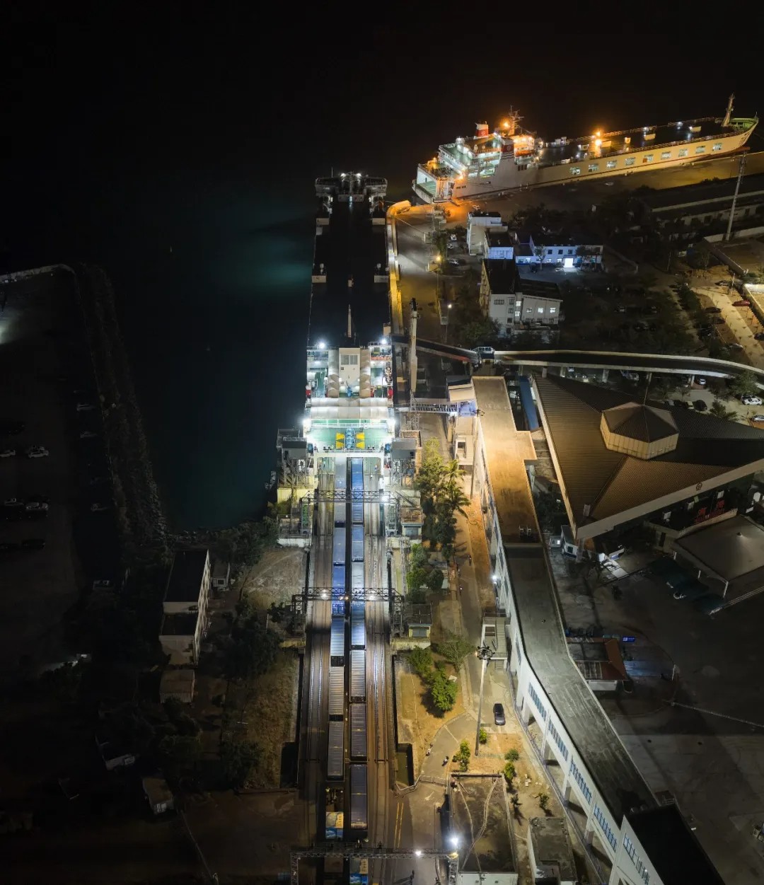 2月6日晚,海南自贸港春运首趟海关监管货物列车驶上粤海铁路轮渡,随后穿越琼州海峡,再沿黎湛铁路等线路运达目的地。
