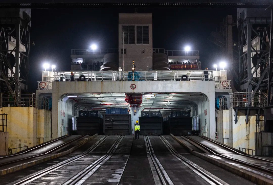 夜幕降临,海口站货运场灯火通明。集装箱整齐列阵,货装值班员穿行于查验平台间,指尖划过一摞摞单据,对讲机里应答声此起彼伏。待渡场上,调车长身披荧光绿防护服,精准指挥着一列列火车分解、编组、登船……当广湛高铁把粤西拉进快车道,当湛海高铁的蓝图日渐清晰,“湾”“港”联动就在无数这样的协作细节里相携前行。铁路货运一线的“守关人”,让每批货物都走得顺、快、安全,把自贸港的便利与温度,送到每一趟跨越海峡的航程里。