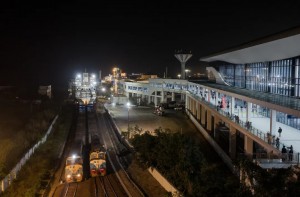 分解编组的列车缓缓驶上粤海铁路轮渡,旅客同步从客运廊道登船。