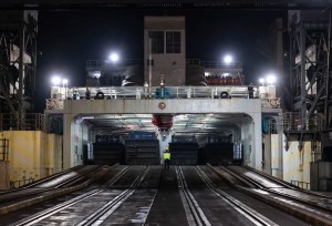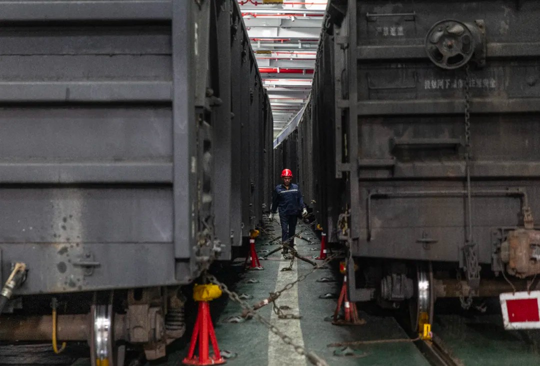 完成装载后,粤海铁路轮渡即将驶离港口。