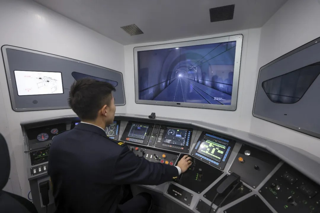 2024年12月19日,京张高铁司机通过模拟驾驶系统进行训练。贾天勇 摄