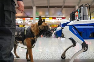 2026年2月14日,济南铁路公安局济南公安处在济南西站试用一台警用机器狼,全方位提升巡逻效率。周航 摄