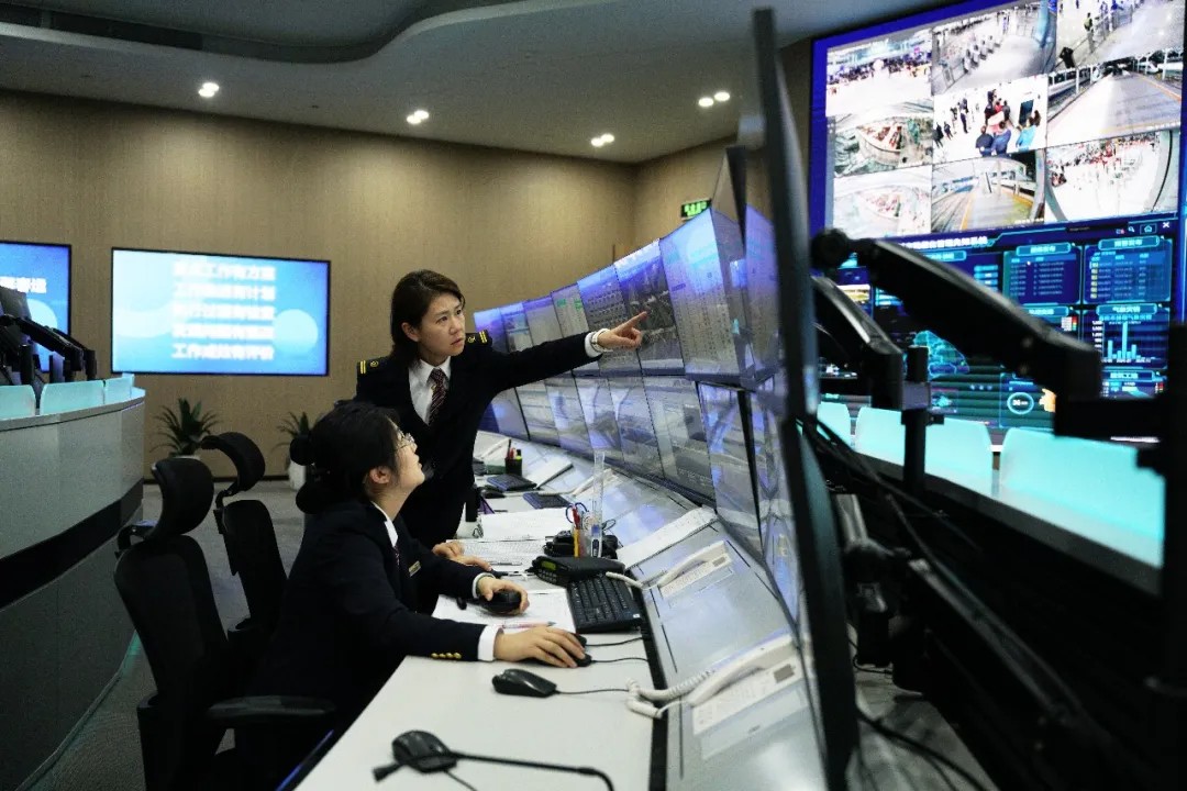2026年2月4日,国铁上海局上海站指挥中心工作人员正在通过监控系统,密切关注辖段列车运行情况。唐红星 摄