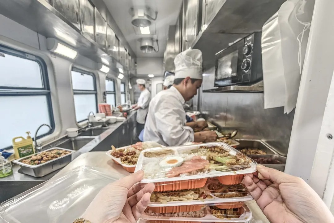 17时04分,在湖南境内运行的 Z502 次列车上,餐车厨房一片忙碌。薛云麾 摄