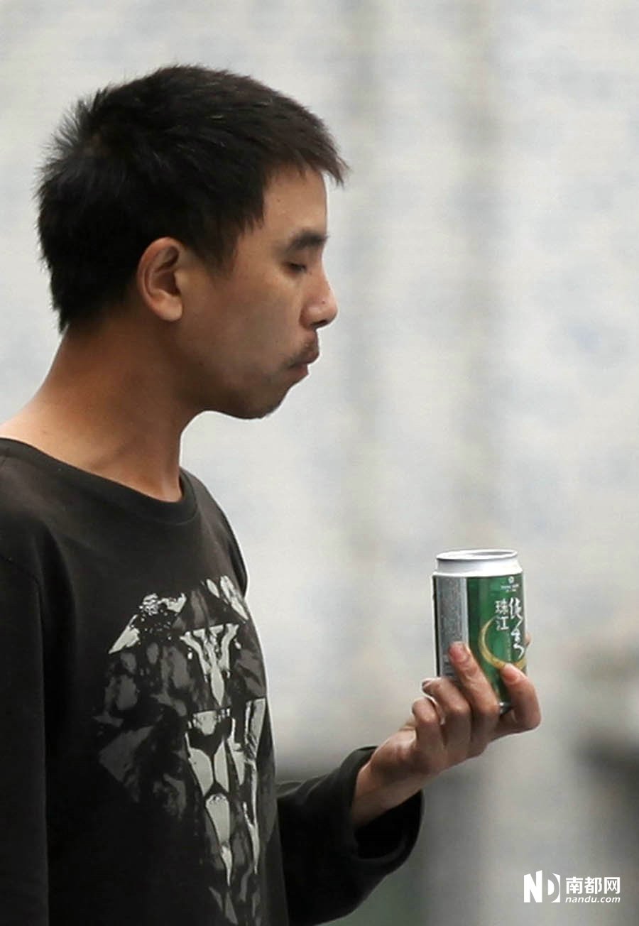 2012年12月20日,佛山市(鸿运)汽车站,11点42分,男子拿着一罐啤酒。南都记者 张明术 摄