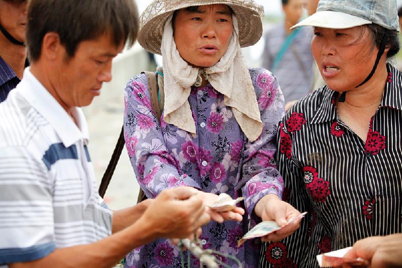 金奖 沉重的海岸线:今年的收购价格比去年低了很多,“拾海人”在和小贩争执价格。(2012.07.12,杭州湾)
