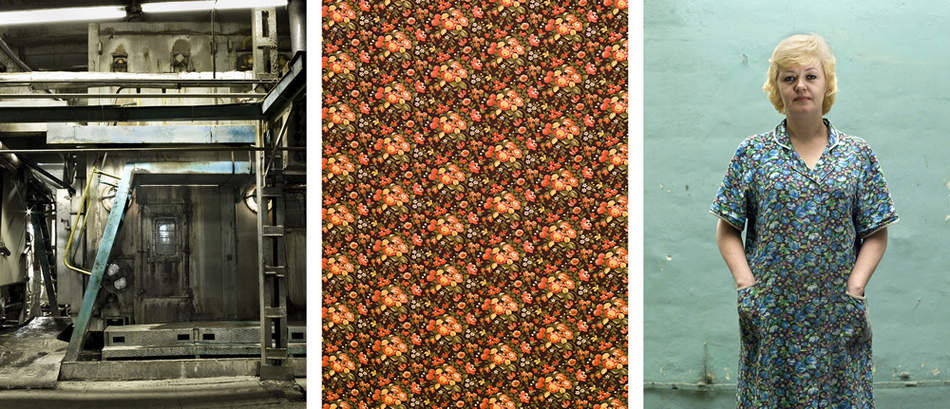 “工厂”系列照片拍摄于俄罗斯伊凡诺沃小镇的纺织厂。拍摄对象有工厂多年以来或新或旧的纺织品、工厂内部一些古老或更新的设备、以及年龄不一的女工。该小镇曾被称为“新娘镇”,因为这里多数人口为女性,她们一般都在纺织厂工作。这个小镇曾是俄罗斯纺织工业的中心。然而随着时代发展,由于一些低劳动成本国家的竞争,大多数工厂关闭了。今天,只有少数工厂还在运作,但它们可能也不能维持很久。