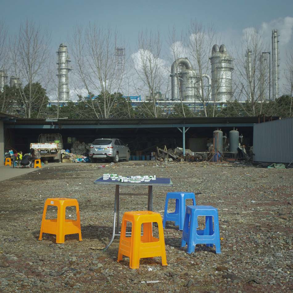 【组照】浙江,镇海,摆在厂区内的麻将桌。麻将是这里的人民放松娱乐的方式之一。2013年11月