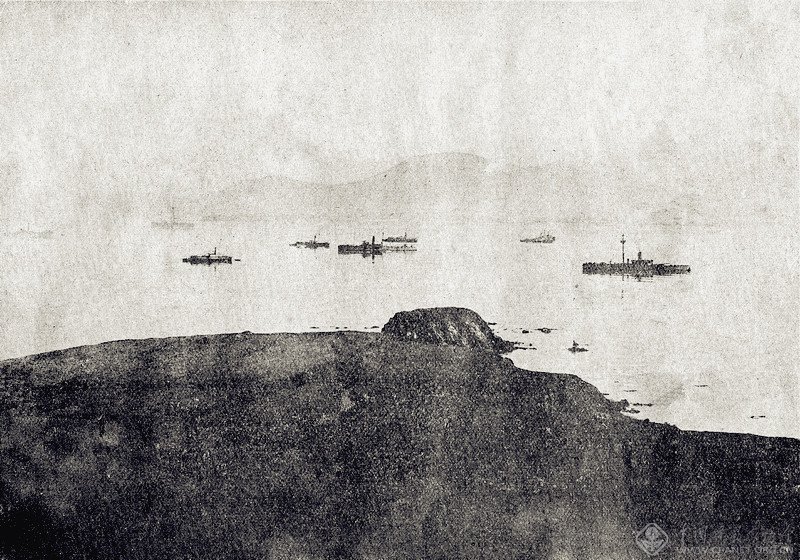 42、由威海卫港龙庙嘴炮台远望日军水雷艇22号沉没