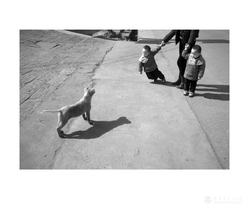 除了是一个出色的摄影教育者和摄影工作组织者,王应超还是一个勤奋的摄影人,他在做好教育工作的同时,一直坚持创作。他的作品将镜头对准的依然是普通老百姓们的生活,且带有浓厚的地域特色。但在呈现的中,并没有过多的受到老一代摄影家的影响,他用自己独有的理解,避免了那些平平淡淡的复制记录,践行着自己固有的理念。黄土高坡上玩着最原始游戏的孩子们,田地里裹着头巾排成一排播种的妇女们,护城河旁悠闲的垂钓者以及带着新年礼物匆匆回家中年人等等,这些司空见惯的生活场景,并没有简单的记录,而用他自己的视觉方式和影像关系,给画面带来一种多样的解读表述,耐人寻味,直击人的心灵。可以看出,他对现场影像关系把握和掌控如此精准,这些都跟平时的学习和积累是分不开的。