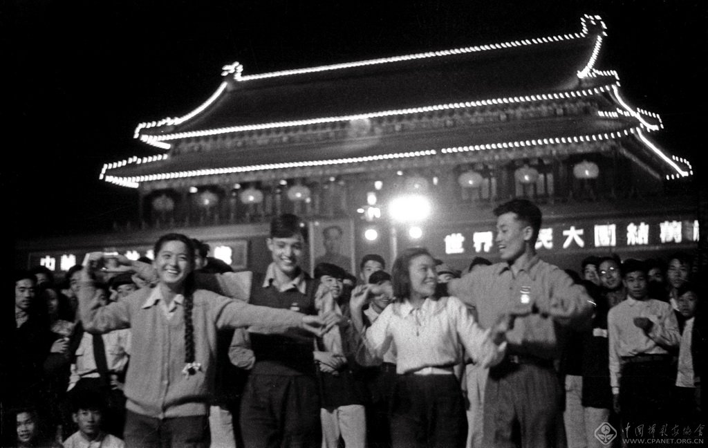 天安门前的庆祝国庆联欢晚会。1952年 张祖道 摄