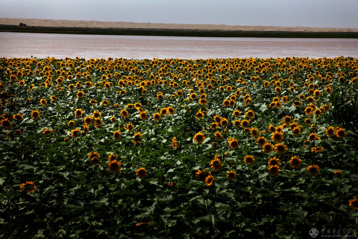 黄河内蒙乌海段,成片的向日葵点缀在黄河两岸。然而河岸几公里外却是林立的化工厂。