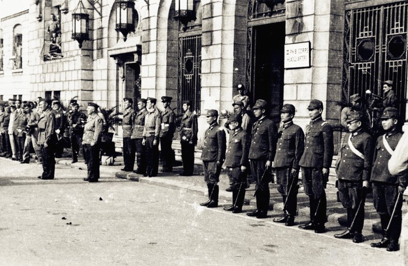 1945年10月6日上午9时,在天津法租界会议局大楼门前,举行了天津受降仪式。美国海军陆战队第三军团官兵列队在大楼左右,美海陆第三军团司令及盟军代表,国民党第十战区受降代表施奎龄,天津市市长张廷谔、副市长杜建时,以及天津市民10万人参加了受降仪式。雷爱德以抗战摄影师的身份,获取了记者证件。在受降仪式的拍摄现场,美军战地记者拿着硕大的格莱菲4×5英寸的新闻相机,天津当地报馆摄影记者拿着笨重的格莱弗莱克斯木质单反相机,只有抗战摄影师雷爱德拿着轻巧的莱卡135相机。在受降仪式过程中,美军记者虽能娴熟地操作大型新闻相机,但雷爱德手里的小型莱卡相机更适合新闻摄影,美军记者在羡慕莱卡相机的同时,也向抗战摄影师雷爱德竖起了大拇指伸。次日,雷爱德拍摄的日本投降的照片,刊登在天津当地的报纸和号外上,日本在投降书上签字啦!日本在投降书上签字投降啦!天津市民欣喜若狂、奔走相告。