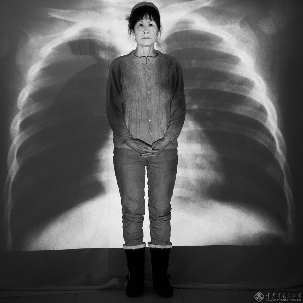 新闻人物类 组照 铜奖 SARS 患者的胸片几乎全部呈现白色,而正常人的胸片则黑白相间,看似一对翅膀。许多SARS后遗症患者,多么希望2003那年能在自己胸片中看到那对翅膀。