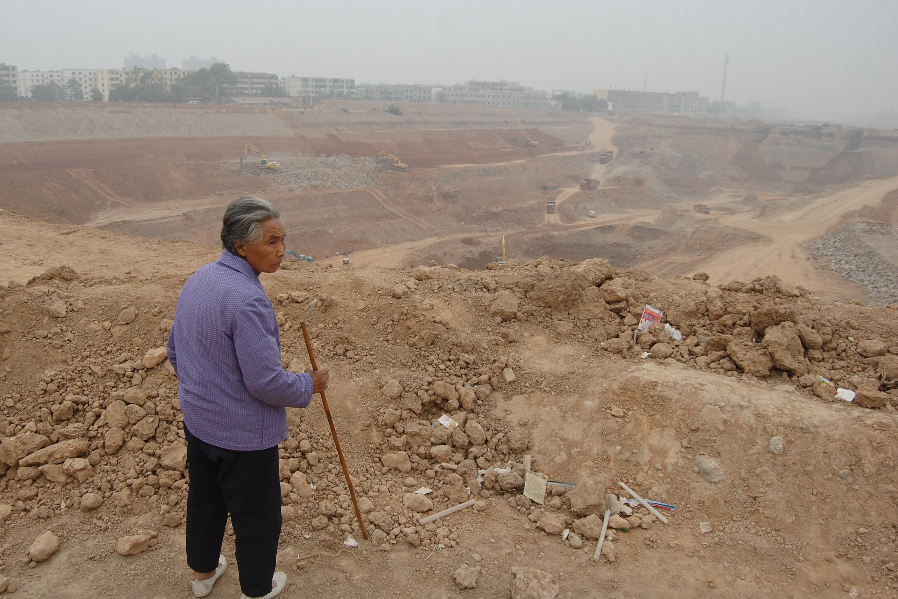 2010年10月20日,一老人停留在南水北调中线焦作马村段工地上,该施工处深挖32米。南水北调顺地势自流,遇低洼处填高渠堤,在高处深挖渠道。