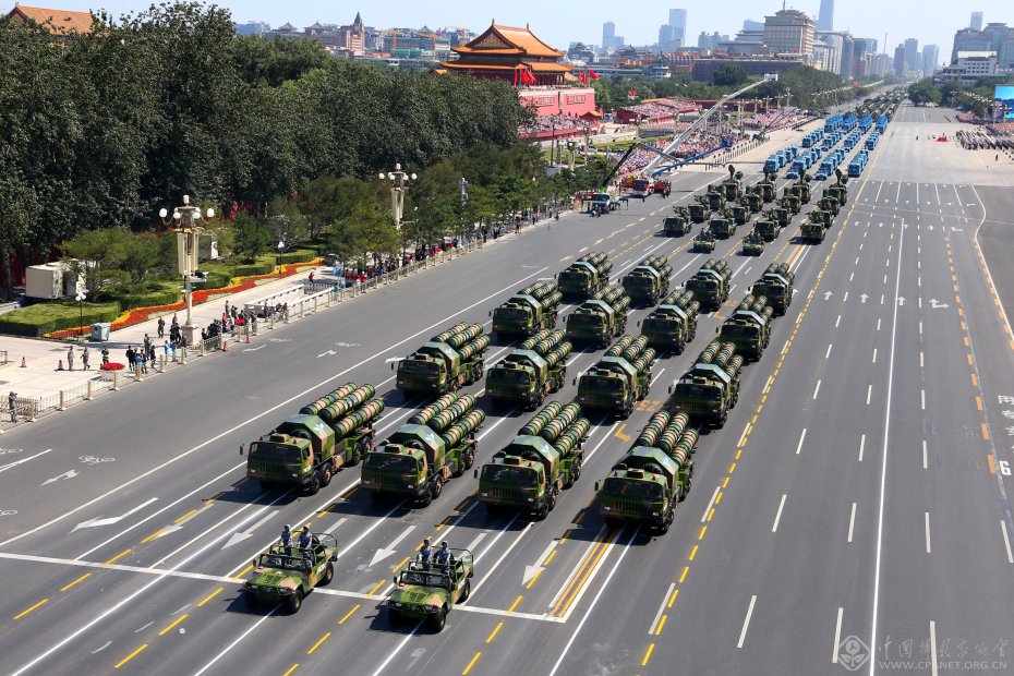 9月3日,中国人民抗日战争暨世界反法西斯战争胜利70周年纪念大会在北京隆重举行。这是装备方队通过天安门广场。 新华社记者 査春明 摄