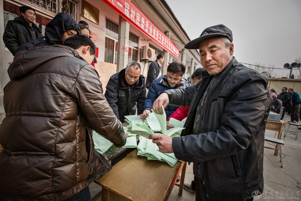 2014年底,按照上级要求和村民委员会组织法的规定,第11届村民委员会换届选举在山东昌乐县境内有条不紊的展开。本组图记录的是鄌郚镇上河洼选区王家河洼村村民委员会换届选举的过程。该村800多名选民,到场参加选举的700多人,参与率达到了90℅以上,充分展示了新农村农民对自己民主权利的尊重与参与热情,也展示了我国基层民主政权建设的成功,其中组图中投票的老人时年93岁。