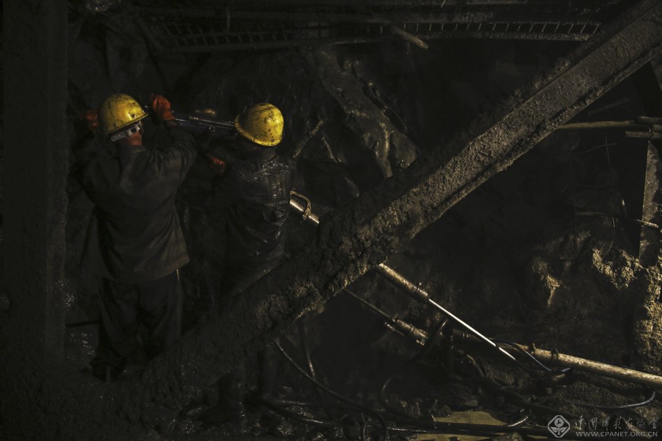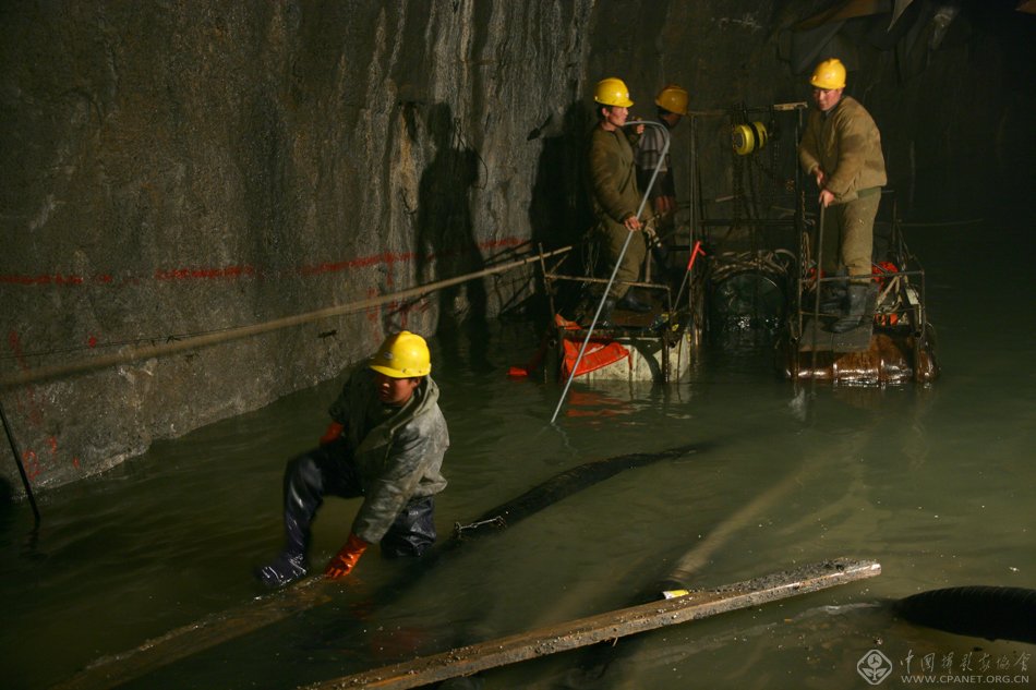 建设者在隧道里施工。
