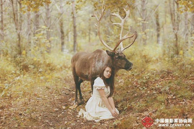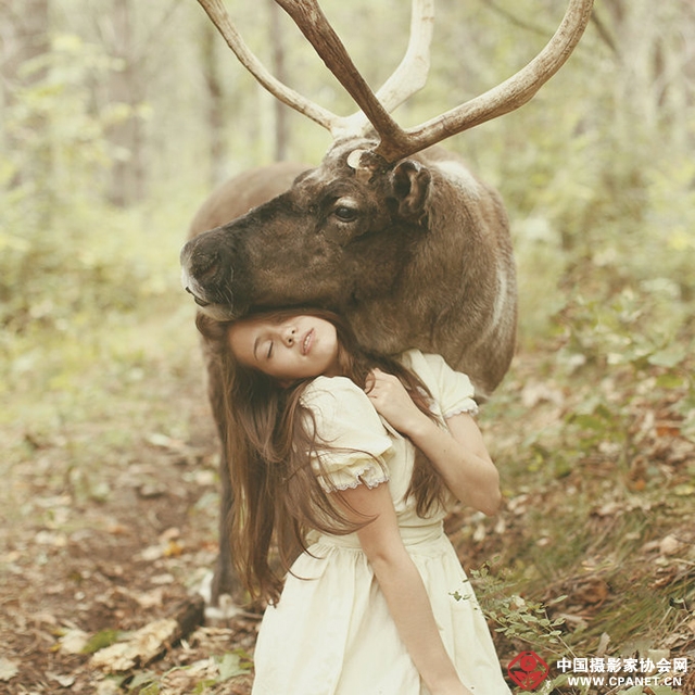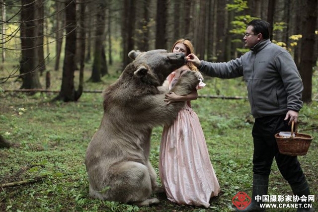 莫斯科摄影师Katerina Plotnikova大胆邀请大型野生动物,比如熊、大象、长颈鹿、麋鹿等,与女性拍摄一组神话人像作品。